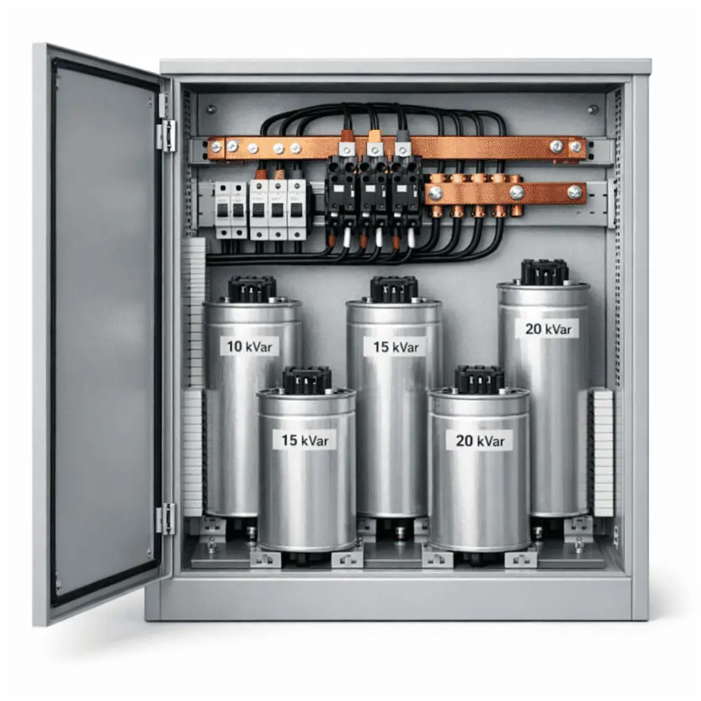 Instalação Técnica: Montagem do painel de correção com proteções adequadas (disjuntores e contatores para capacitores).